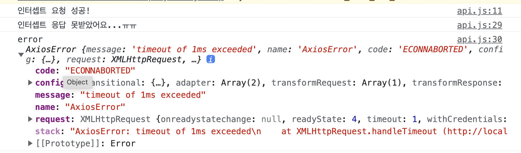 - timeout : 요청이 중단되기 전 대기할 시간 (밀리초 단위)
